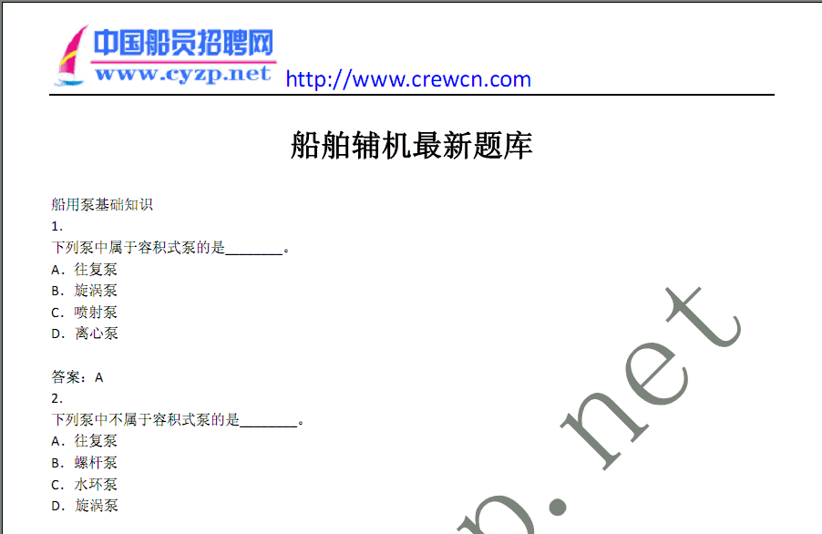 船舶輔機(jī)最新題庫(kù)下載