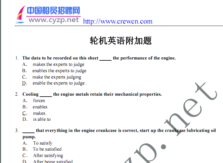 >>海員考試輪機(jī)英語附加題